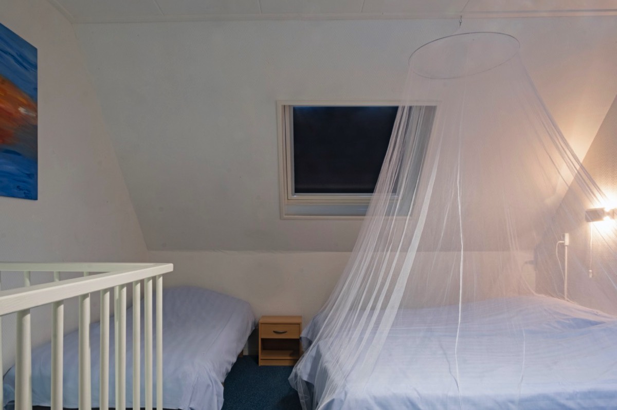 Op de eerste verdieping is er ruimte voor 3 personen en op de tweede verdieping staan er nog eens twee bedden.